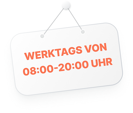 Werktags von 08:00-20:00 Uhr